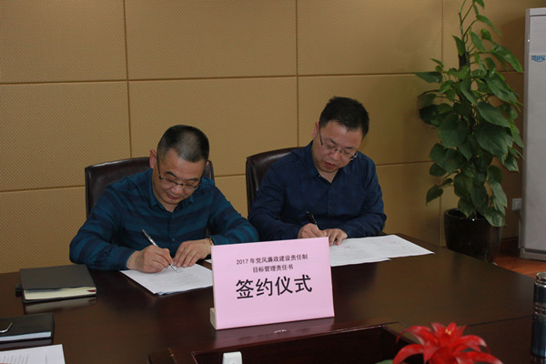在這次學(xué)習(xí)會(huì)上,由孟書記與班子成員和14個(gè)黨支部書記簽訂了《2017年度黨風(fēng)廉政建設(shè)目標(biāo)責(zé)任書》,同時(shí)公司黨政領(lǐng)導(dǎo)與分管部門簽訂了《2017年度廉政建設(shè)目標(biāo)責(zé)任書》。