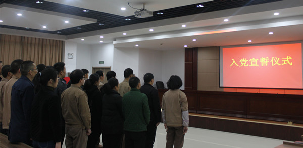 會(huì)上,一面鮮艷的黨旗由四名護(hù)旗手護(hù)衛(wèi)到臺(tái)前,組織處處長(zhǎng)齊玉鳳宣讀了黨員名單,新黨員列隊(duì)整齊地站前黨旗前。首先,各黨支部書記親自為參加儀式的黨員們佩戴上象征著榮譽(yù)和責(zé)任的黨徽。隨后,與會(huì)全體黨員在組織員王呂豪的帶領(lǐng)下,舉起右拳,面對(duì)鮮艷的黨旗,發(fā)出了為共產(chǎn)主義奮斗終身的決心和誓言。整個(gè)過程莊嚴(yán)肅穆,儀式讓與會(huì)全體黨員同志們接受了一次黨性教育的洗禮,同時(shí)也推動(dòng)了“兩學(xué)一做”學(xué)習(xí)教育從初心抓起,從入黨做起。
