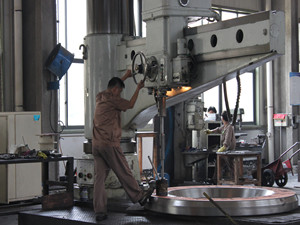 高溫天里,車間的機(jī)器轟鳴聲從未間斷,工人們不停地忙碌著。17-150#越南德誠(chéng)電站貫流機(jī)組外導(dǎo)環(huán)加工實(shí)行兩班倒,實(shí)現(xiàn)24小時(shí)不停機(jī)。12米5數(shù)控立車的幾位操作人員,積極配合車間工作,服從安排堅(jiān)守在這個(gè)火熱的陣營(yíng)里,他們“全副武裝”,一如既往地堅(jiān)守崗位,額頭流下來(lái)的汗水,一次又一次模糊了他們的視線。條件再苦,溫度再高,工作再累,時(shí)間再晚 ,他們擼起袖子加油干,溫度越高干勁越足,這就是杭發(fā)的職工,面對(duì)高溫的“烤”驗(yàn),不服“暑”。