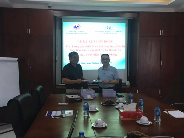 日前,公司總經(jīng)理、黨委書記孟中惠帶隊(duì)赴越南與越方業(yè)主簽訂了越南向峰電站正式供貨合同。越南向峰電站水頭 316米,水輪機(jī)型號(hào):CJA475-L-140/4X13,發(fā)電機(jī)型號(hào):SF-J9400-12/2840,立軸式四噴嘴沖擊式機(jī)組,電站裝機(jī)容量為18.8MW。越南向峰電站是繼越南德成電站后我公司又一個(gè)在越南機(jī)電總承包項(xiàng)目。該項(xiàng)目合同額近2000萬人民幣,電站建設(shè)周期為24個(gè)月。