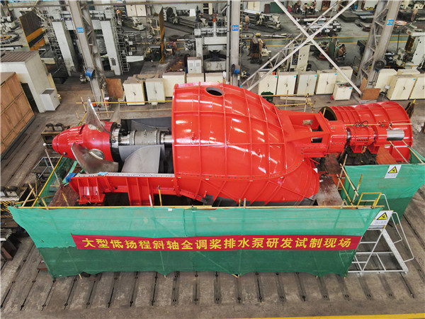 排澇水泵的研發(fā)技術(shù)和燈泡水輪機(jī)研發(fā)技術(shù)存在許多相似之處,大型低揚(yáng)程斜軸全調(diào)槳排水泵項(xiàng)目,杭發(fā)是當(dāng)前在浙江省內(nèi)第一家生產(chǎn)制造的企業(yè),也是國內(nèi)純水輪發(fā)電機(jī)組制造廠家首次進(jìn)軍大型低揚(yáng)程大流量泵領(lǐng)域。