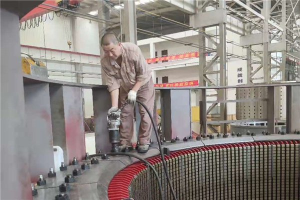 LK機(jī)組是公司重點項目,也是金裝車間目前在制主要水電產(chǎn)品。在2#機(jī)定子鐵芯的壓錠階段,為確保產(chǎn)出要求,裝配人員徐云強(qiáng)、謝二勝等在沖片到位后,放棄休息時間,克服高溫利用晚上加班加點。