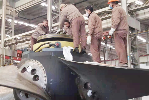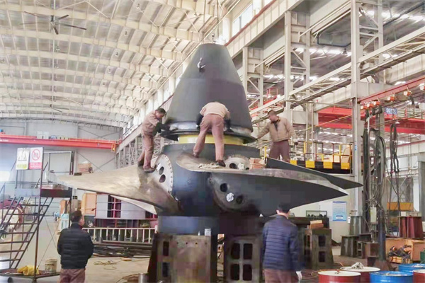同時(shí)該轉(zhuǎn)輪也是我們公司裝配過最大最重的轉(zhuǎn)輪,這套維修的工藝、工裝跟之前公司貫流機(jī)組也不一樣。面對(duì)前所未有的挑戰(zhàn),通過突擊隊(duì)全體成員的努力,克難攻堅(jiān),不僅努力克服疫情管控嚴(yán),而且一直堅(jiān)守工作崗位加班加點(diǎn)趕工,最終在監(jiān)理的見證下,1月30日轉(zhuǎn)輪完成了靜平衡試驗(yàn),正月初六在完成動(dòng)作試驗(yàn)及保壓試驗(yàn)后,進(jìn)行拆葉片工作,保證后續(xù)發(fā)貨順利進(jìn)行。