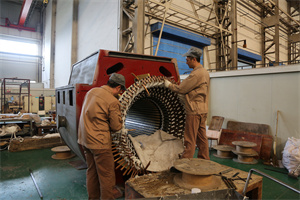 寧波明州熱電定子返修,需更換定子線圈和受損的定子鐵心,且客戶急著使用,總裝成品部合理調(diào)配人員,壓定、嵌線、油漆等工序相互配合,通過人員輪換進行兩班倒進行趕制,在客戶要求的時間內(nèi)完成了機組返修。
