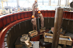 青田小溪和重慶雙江作為公司的兩個重點項目,從七月開始逐步進入裝配階段,為了能夠確保整個裝配過程順利進行,總裝成品部在導(dǎo)水機構(gòu)、定子、轉(zhuǎn)輪、轉(zhuǎn)子等大部件進入裝配前便制定了詳細的生產(chǎn)計劃,同時積極與生產(chǎn)制造部溝通零部件成套,對部件裝配場地進行合理布局,為兩個項目能夠順利裝配提供了保障。定子鑲筋和壓定人員為了保證工期,在較為密閉的機座內(nèi)揮汗如雨,但仍一絲不茍地完成每一個工序。導(dǎo)水機構(gòu)裝配在導(dǎo)葉掛裝時需長期占用行車,為保證其它工序地順利進行,水機裝配人員白天進行轉(zhuǎn)輪裝配、軸瓦研刮等工序,晚上加班進行導(dǎo)葉的掛裝。